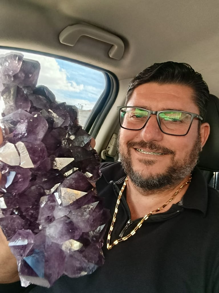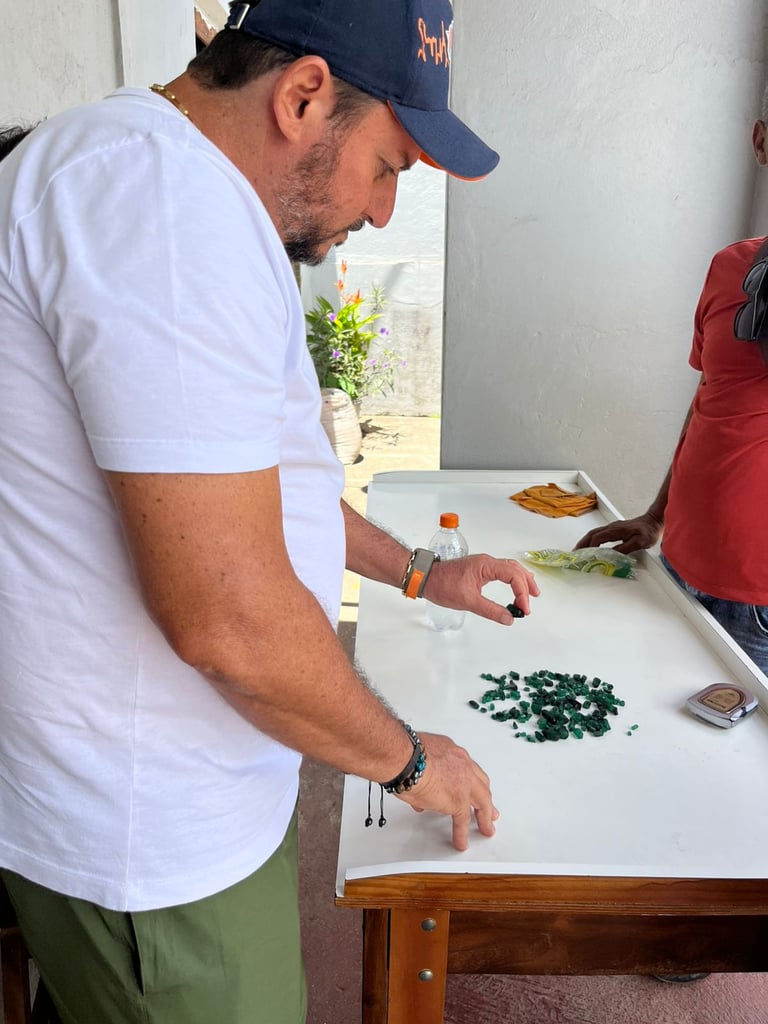 Cresci ouvindo histórias sobre os garimpos de esmeralda em Goiás e na Bahia, acompanhando de perto essa vivência que começou ainda na infância do meu pai e se transformou em aprendizado técnico, prática de mercado e profundo entendimento das pedras — da extração à compra e venda.